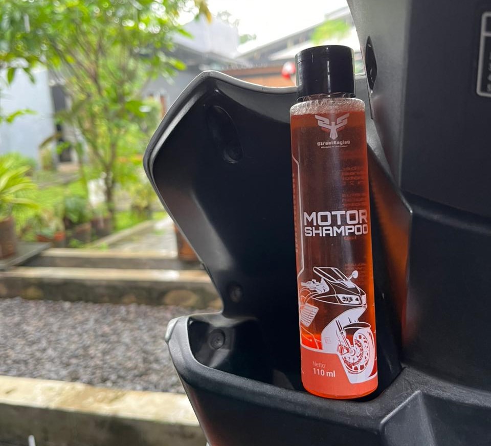 Merawat penampilan motor bukan hanya soal estetika, tapi juga mempertahankan kondisi body agar tetap awet dan terlindungi. Menggunakan shampo khusus menjadi cara paling aman untuk membersihkan motor tanpa merusak permukaan cat, plastik, maupun komponen sensitif lainnya. Untuk perawatan yang lebih efektif, Street Eagle 8 Motor Shampoo hadir dengan formula yang aman untuk semua jenis cat, menjaga kilap natural, dan membantu melindungi body motor dari efek cuaca serta kotoran harian. Dengan penggunaan rutin, motor akan selalu terlihat bersih, segar, dan lebih mudah dirawat.